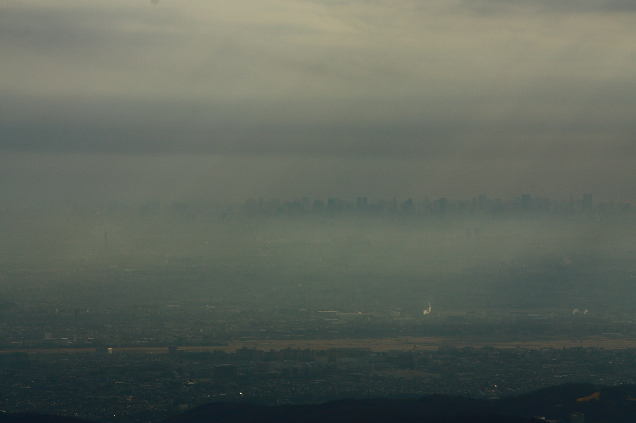 12月、秩父丸山山頂より北東方向。関東平野を厚く覆うスモッグ。
