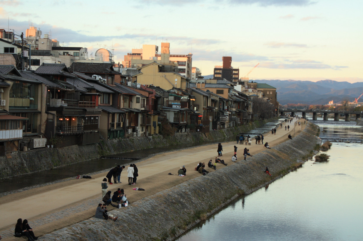 2015年12月 京都 四条鴨川の夕暮れ